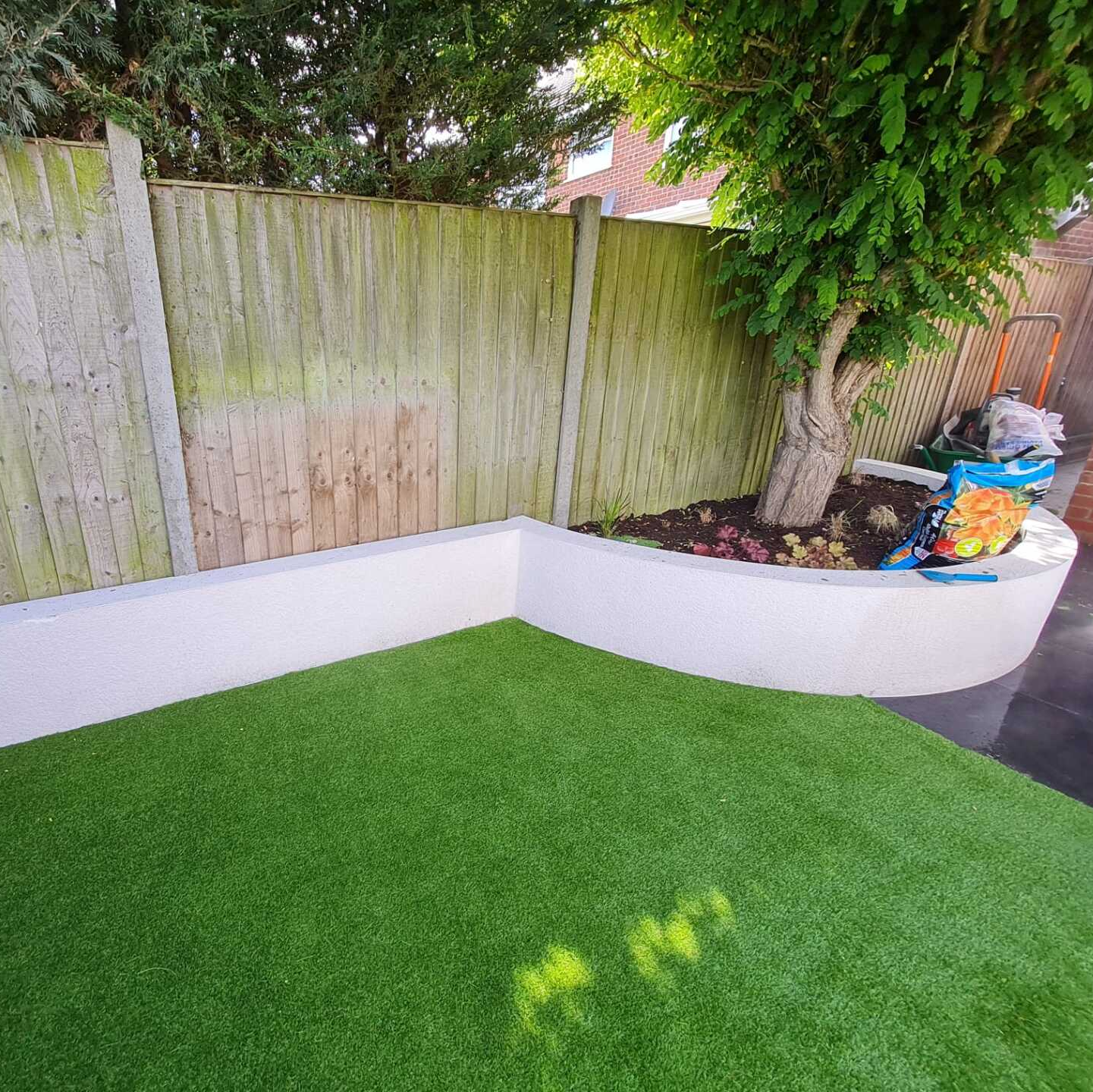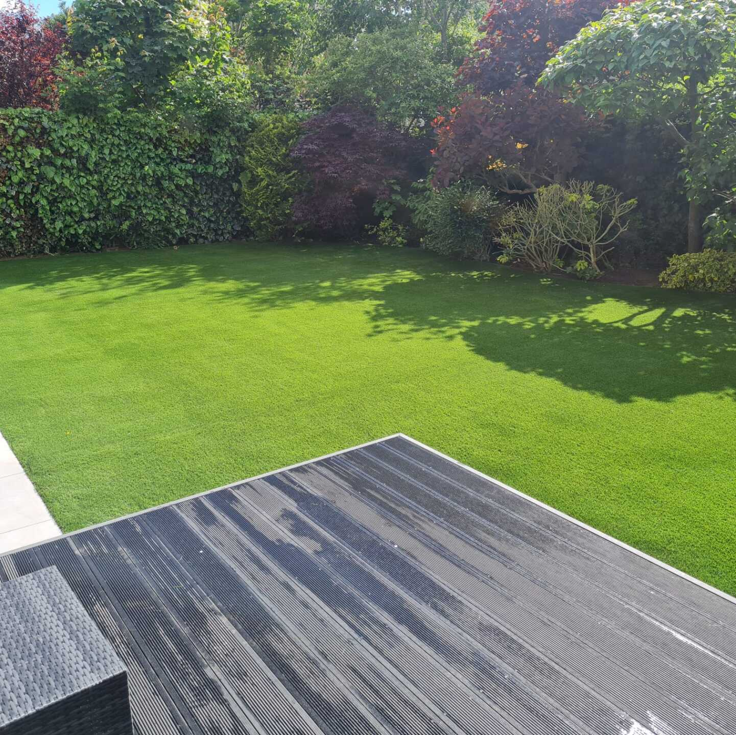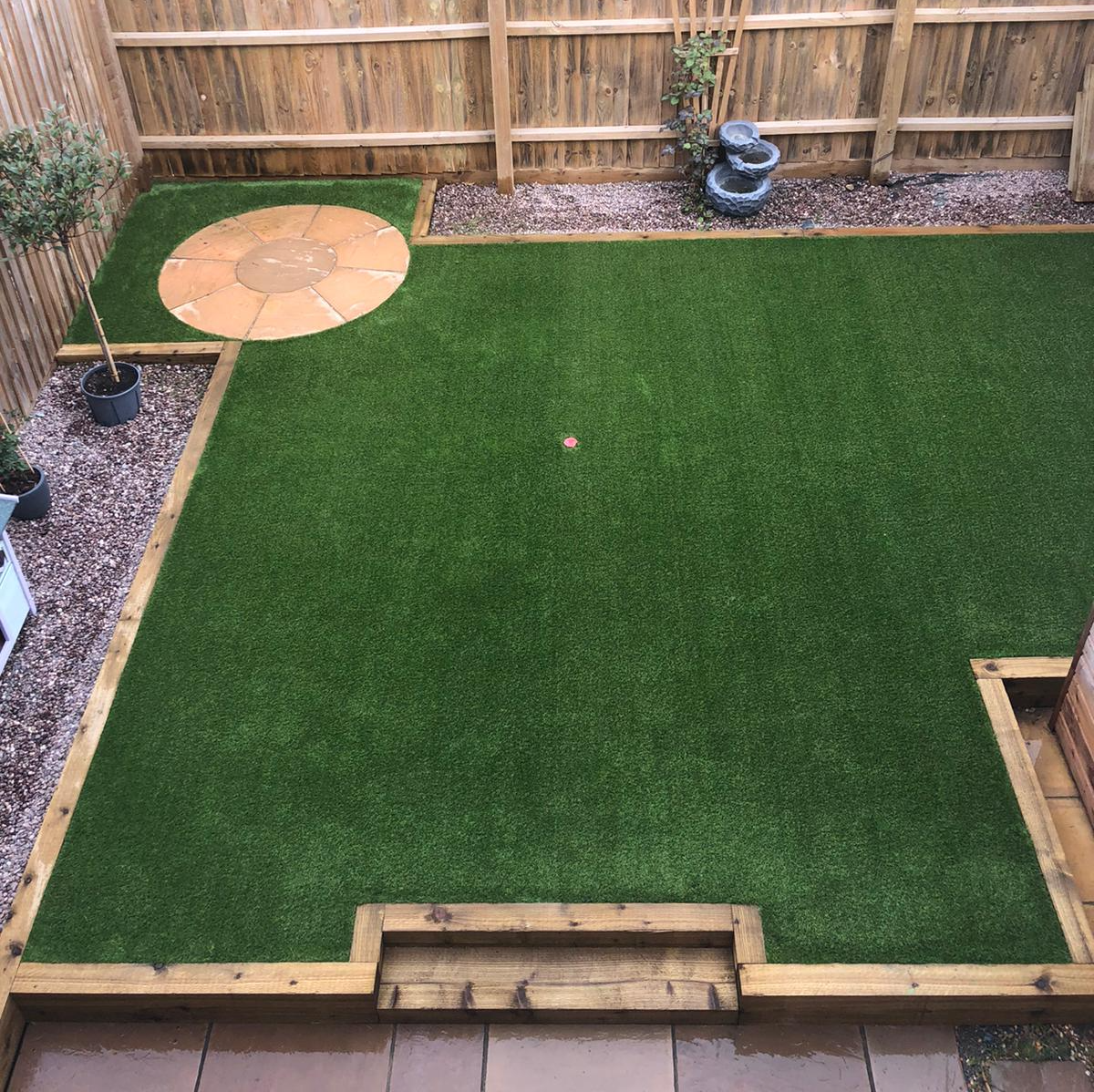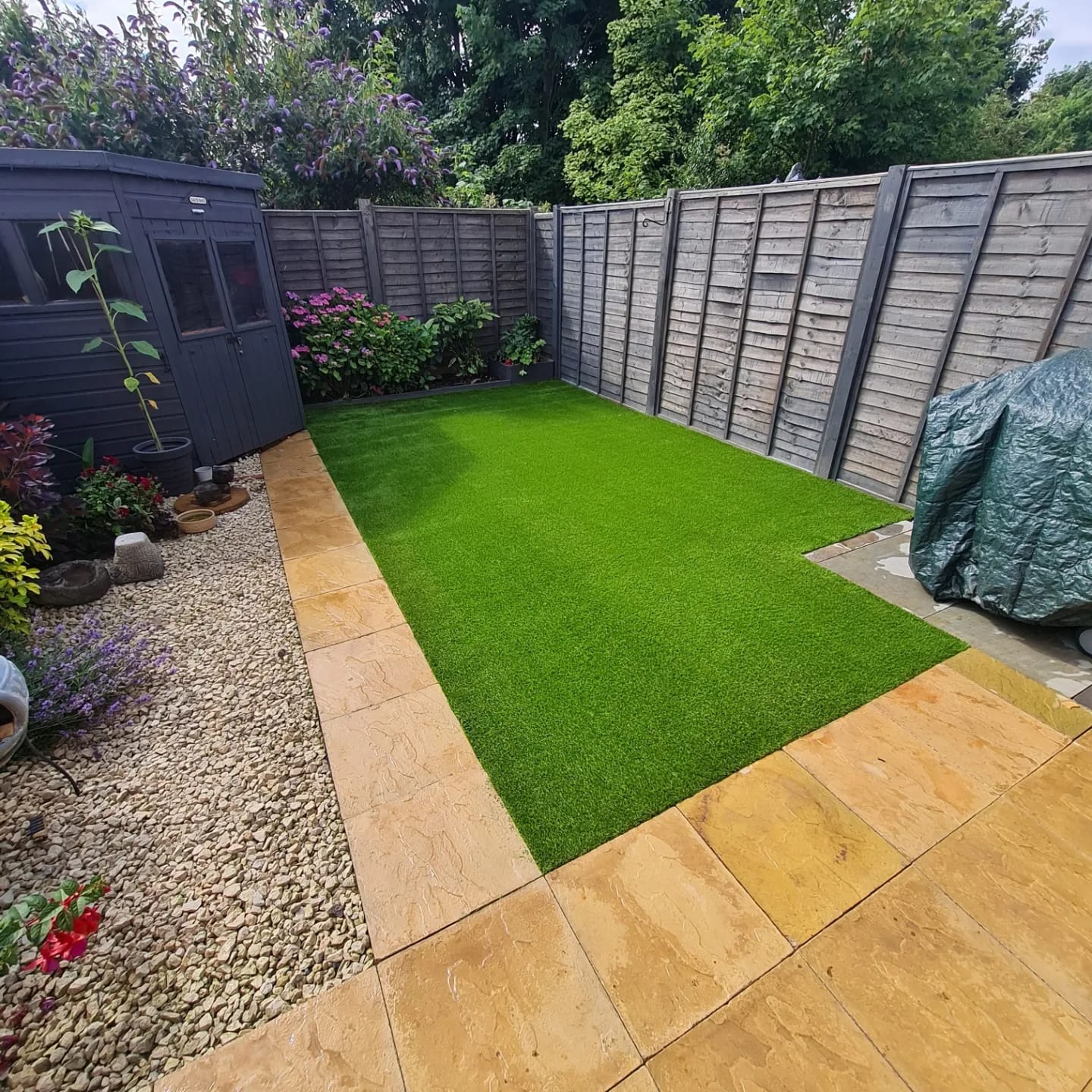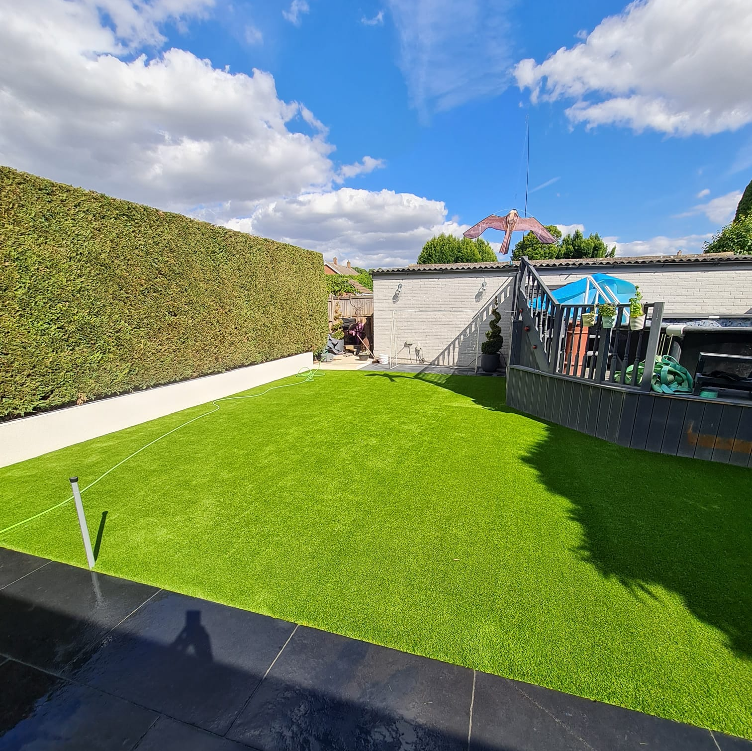 Extending the existing patio and and replacing the muddy lawn with high quality artificial grass turf, made the garden easier to maintain, look tidier throughout the seasons and enabled the owners to lose the lawn mower and enjoy their garden 365 days of the year.