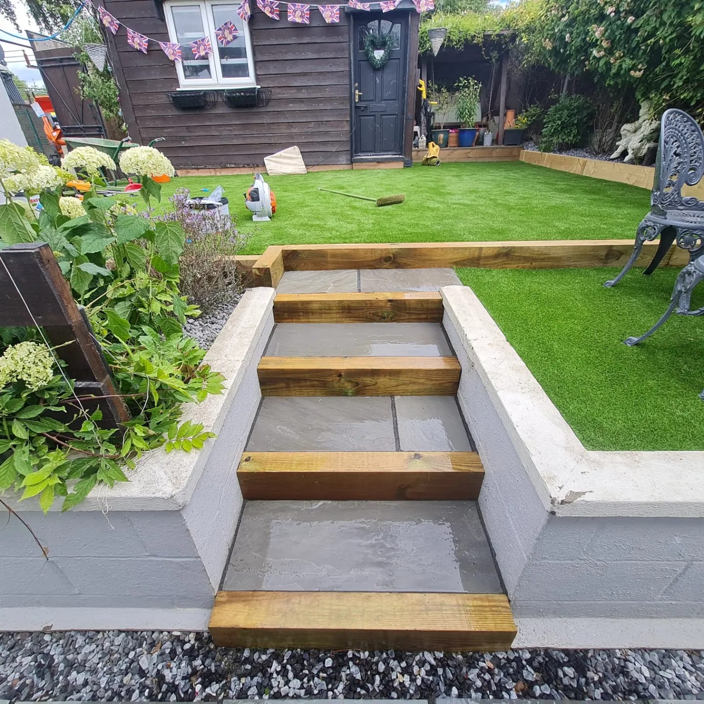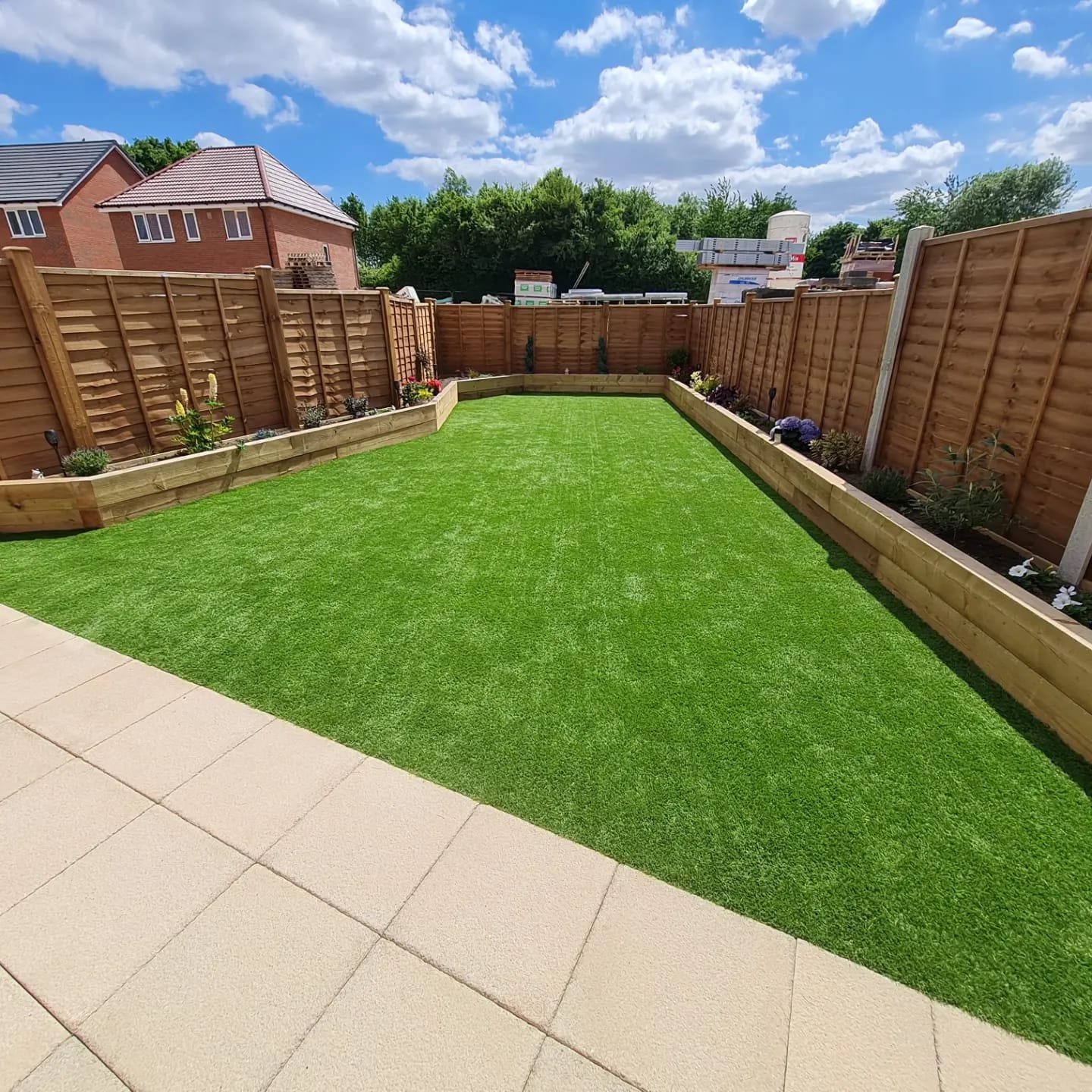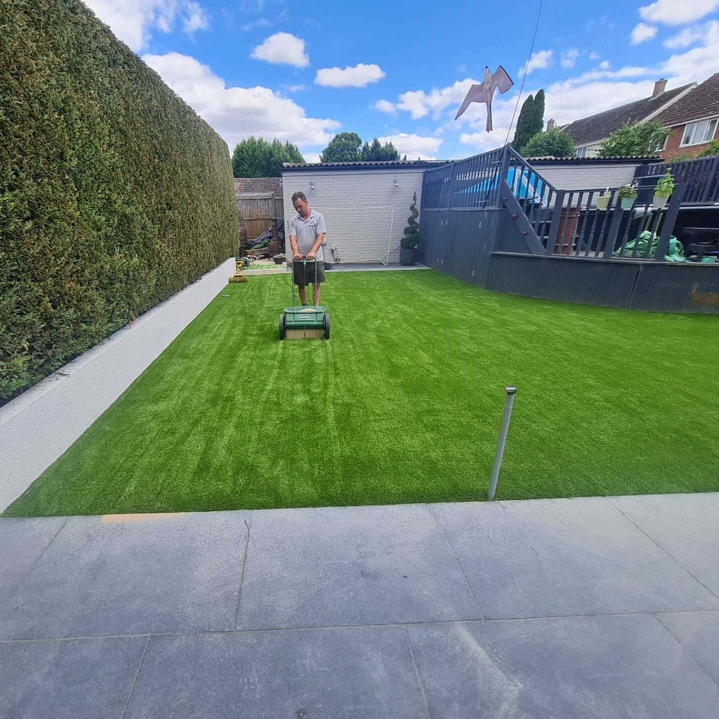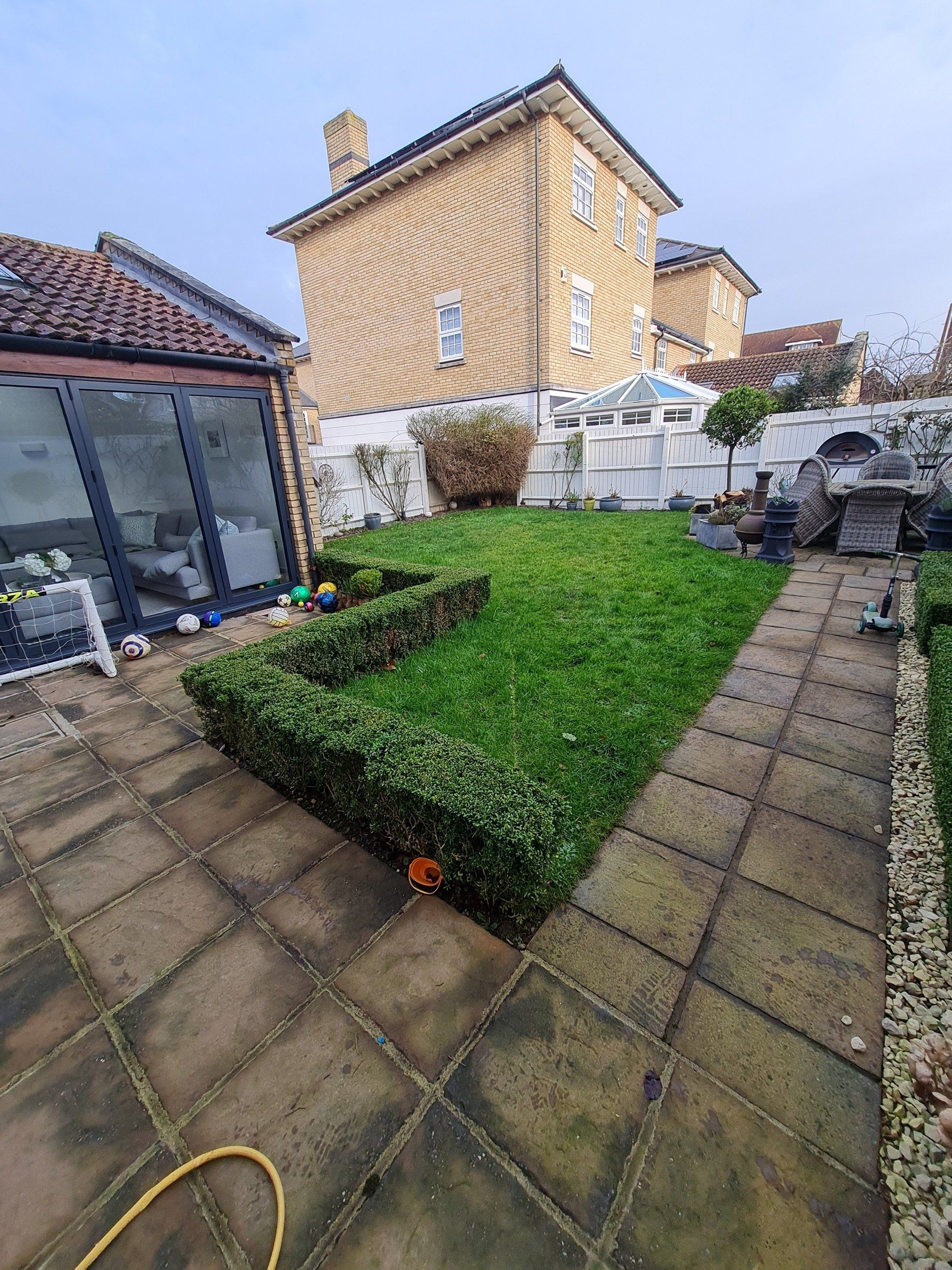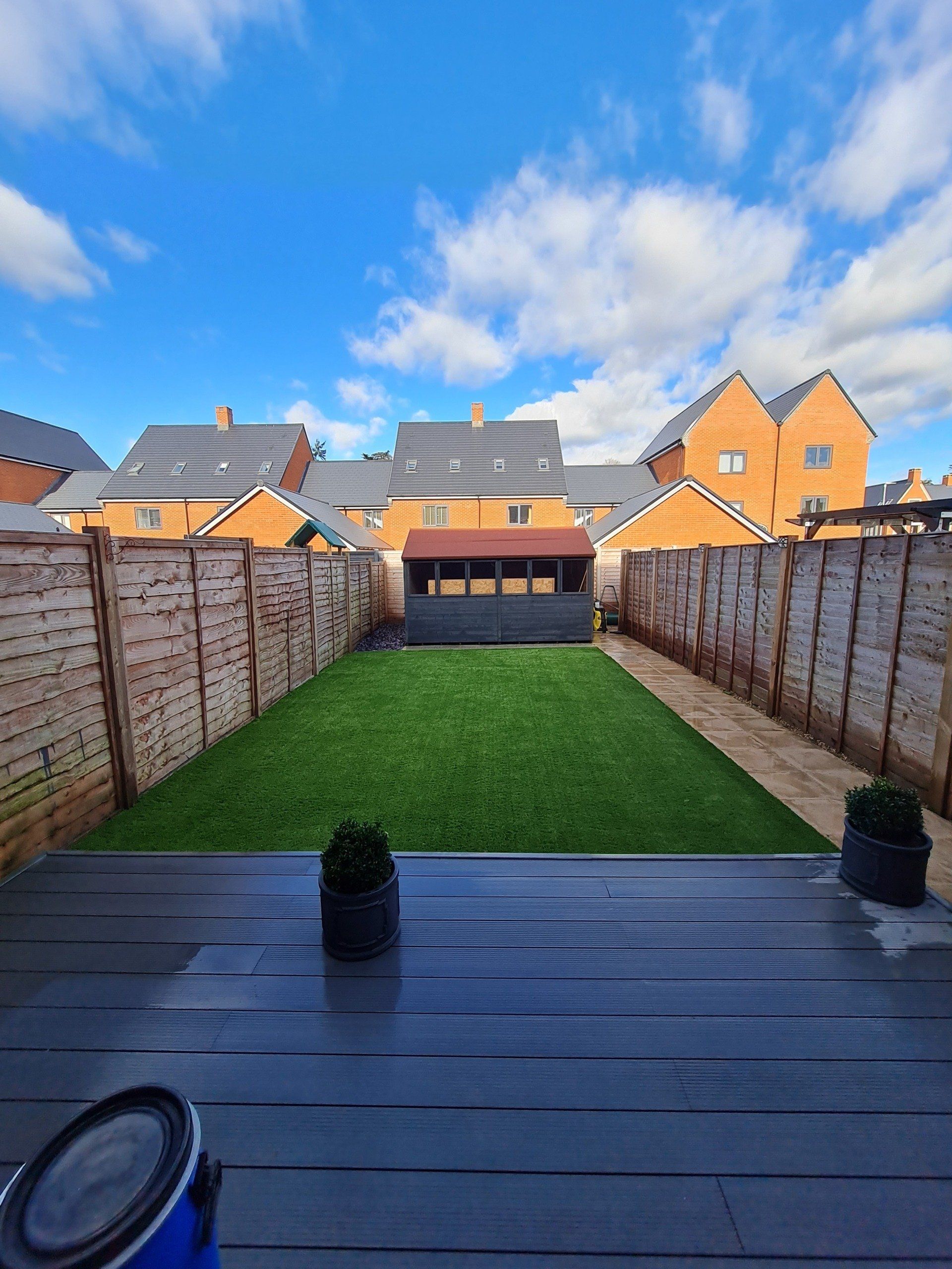 Extending the existing patio and and replacing the muddy lawn with high quality artificial grass turf, made the garden easier to maintain, look tidier throughout the seasons and enabled the owners to lose the lawn mower and enjoy their garden 365 days of the year.