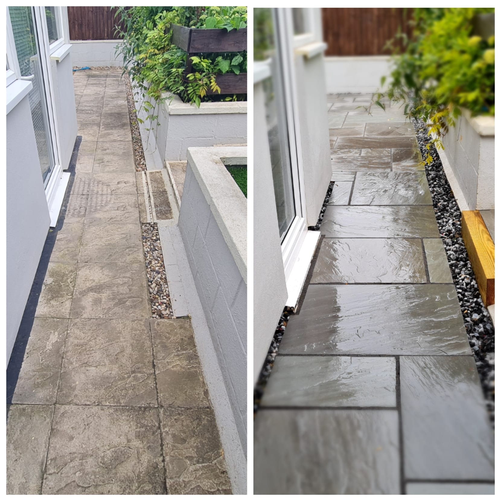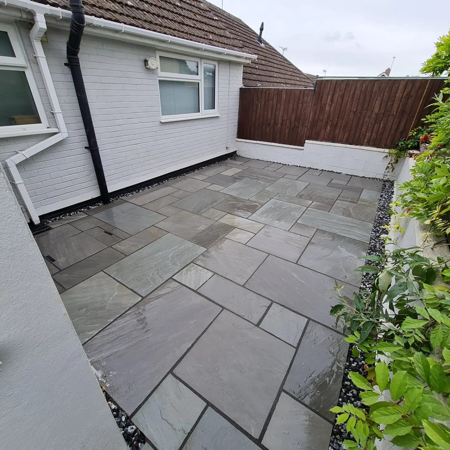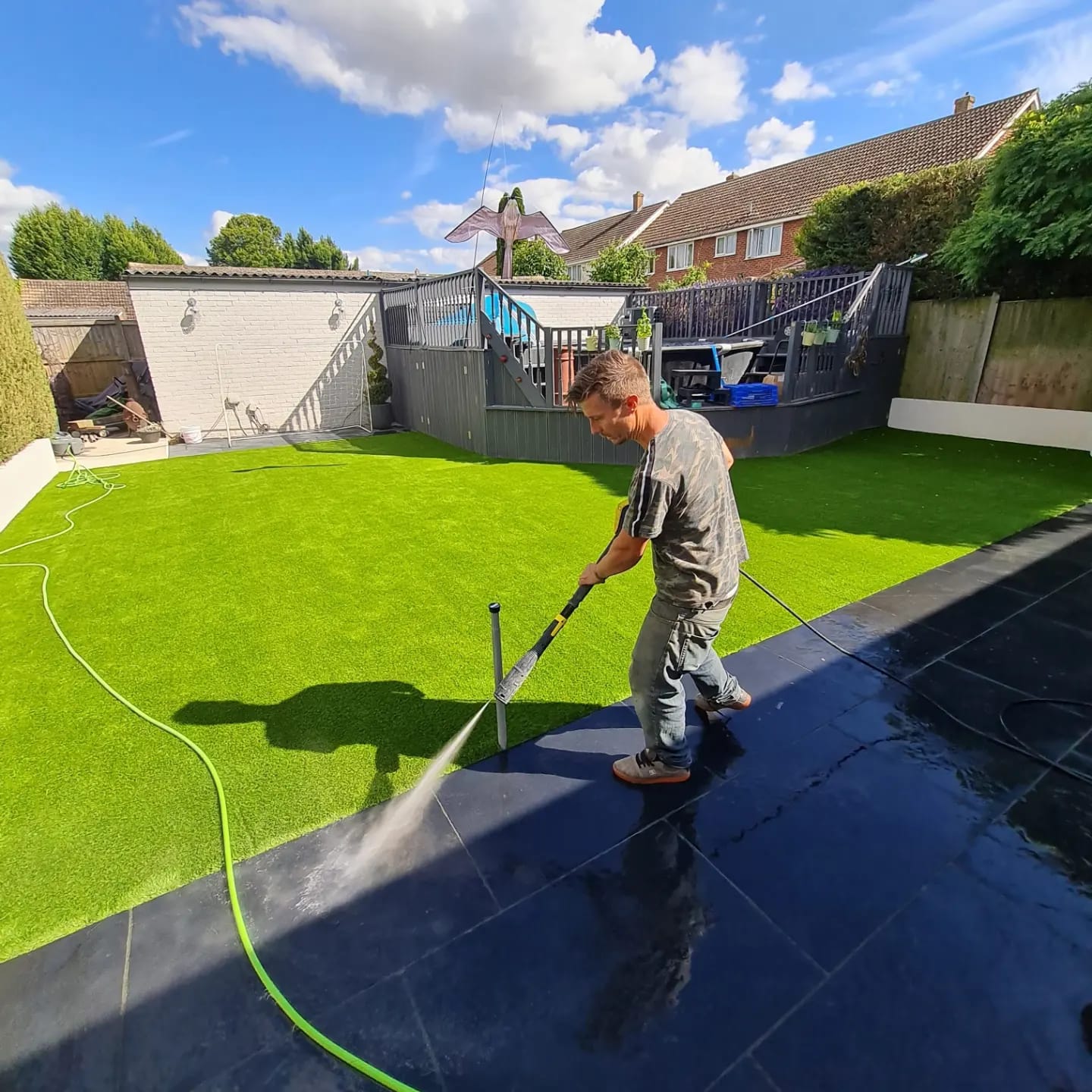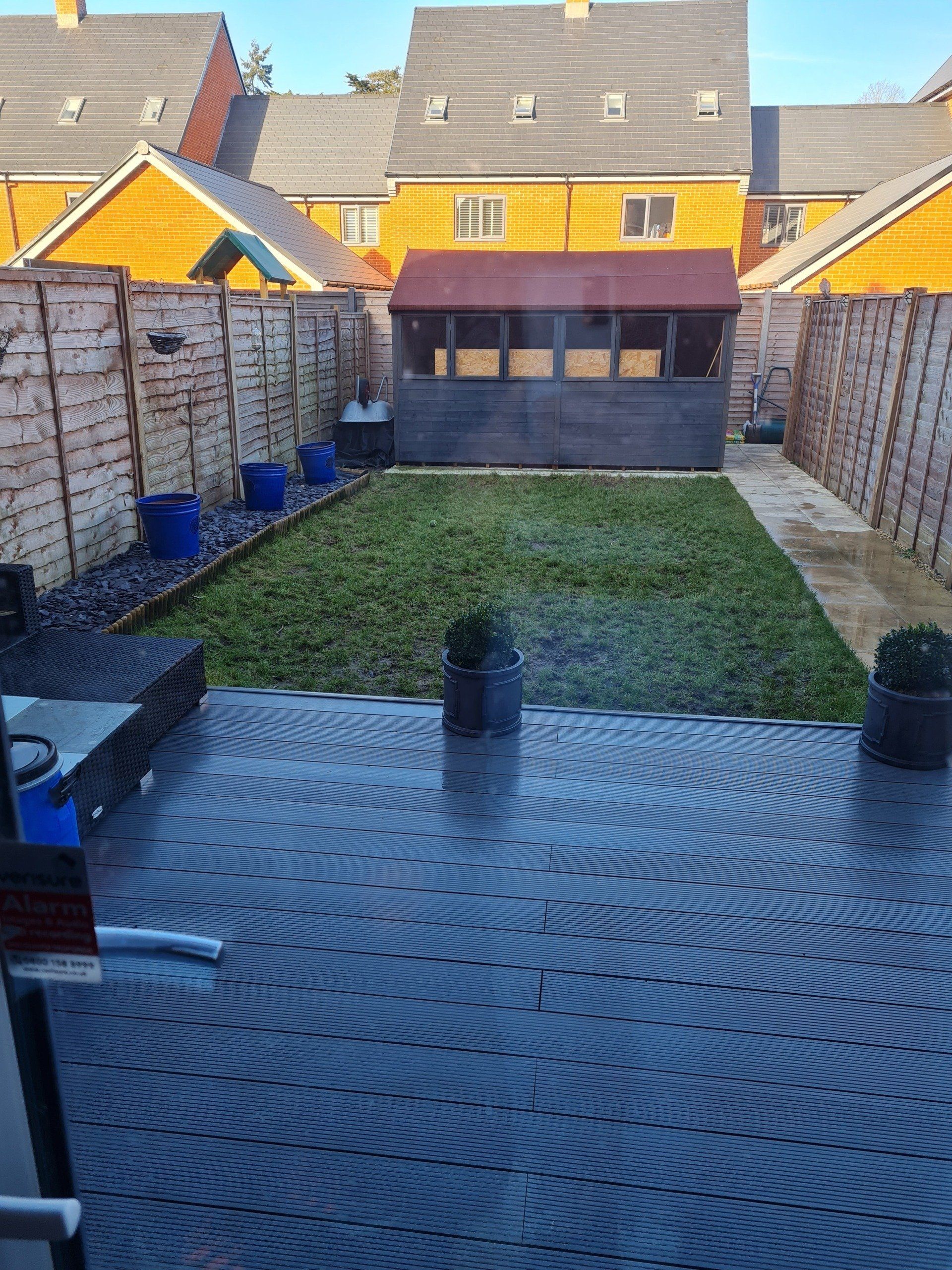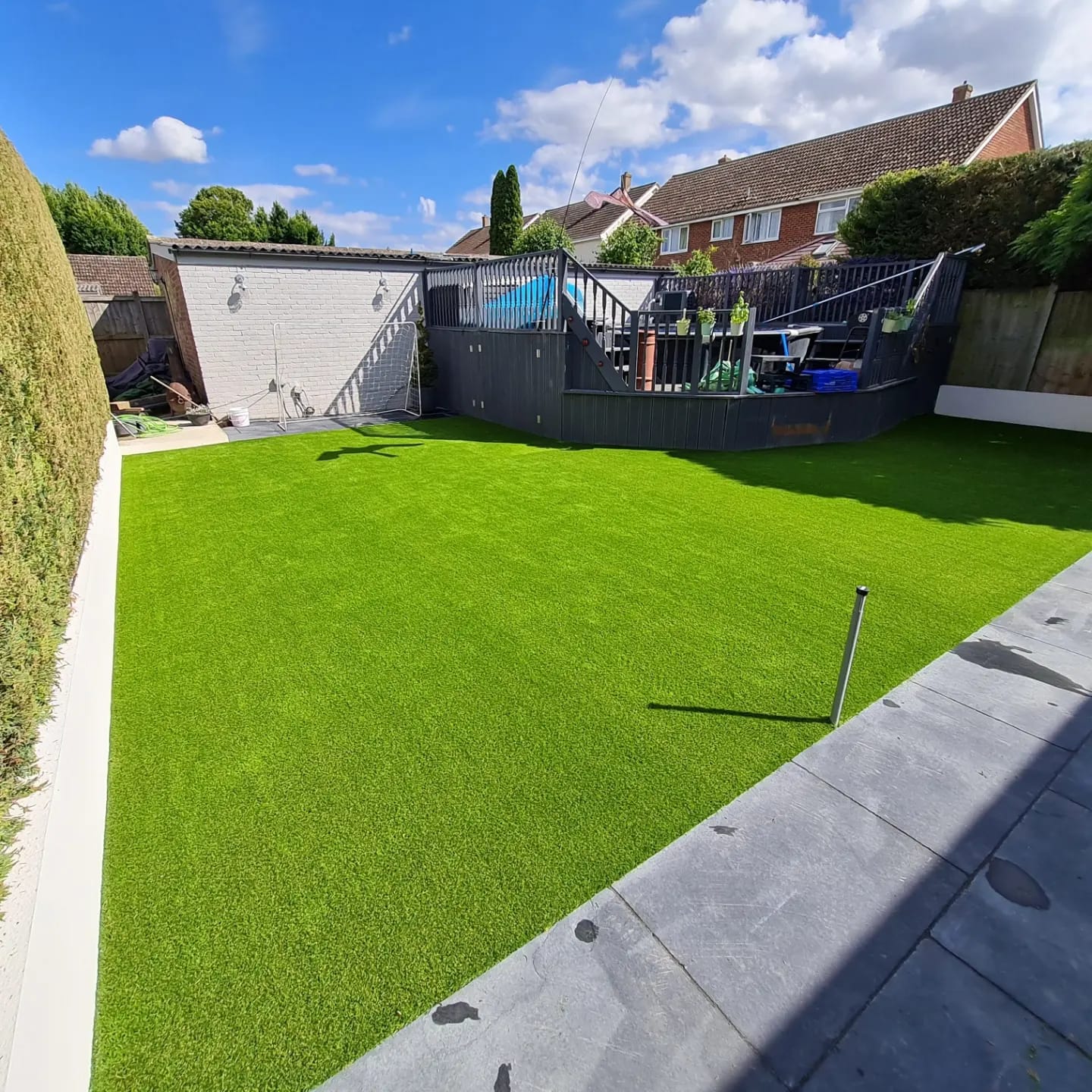 Extending the existing patio and and replacing the muddy lawn with high quality artificial grass turf, made the garden easier to maintain, look tidier throughout the seasons and enabled the owners to lose the lawn mower and enjoy their garden 365 days of the year.